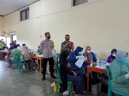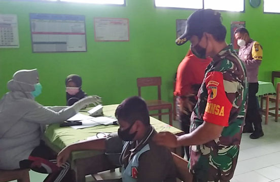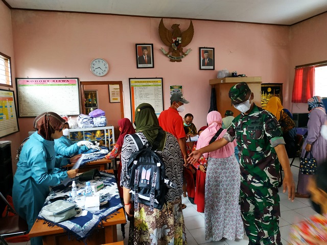 Sukseskan Progam Pemerintah, Anggota Koramil 0804/03 Panekan Amankan Vaksinasi Covid -19 Di Wilayah