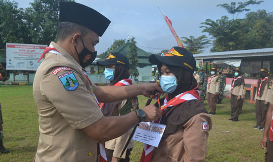 Magetan. Guna mempersiapkan generasi muda dalam melanjutkan perjuangan bangsa yang berkarakter sesuai dengan Satya Dharma Pramuka, Kodim 0804/Magetan menggelar kegiatan pengukuhan anggota baru Satuan Karya Wira Kartika.