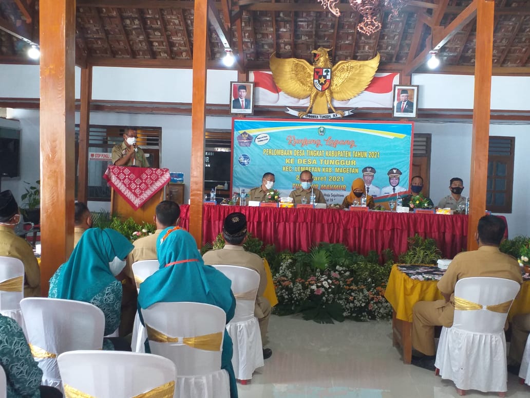 Kegiatan penilaian Lomba Desa tersebut dihadiri Kepala Dinas PMD Kabupaten Magetan Bpk Eko Muryanto beserta Tim Penilai, Anggota DPRD Magetan Ibu Karmini, Forkopimca Kec Lembeyan, Camat Lembeyan Bapak Syaiful Yani SSos MM, Danramil 0804-12/ Lembeyan Kapten Inf Gunawan, Wakapolsek Lembeyan Iptu Catur Yani, Kasi Pemerintahan Kecamatan Lembeyan Bapak Sinung Wahyudi, Tiga Pilar Desa Tunggur, Ketua BPD Desa Tunggur, Ketua LPM Desa Tunggur, Ketua PKK Desa Tunggur, Karang Taruna dan Perangkat Desa Tunggur.