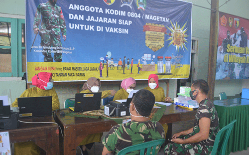 Pantauan di Makodim 0804/Magetan, bahwa dalam pelaksanaan vaksinasi Gelombang 1 tahap 2 ini, bekerja sama dengan Poskes 05.09.07 Magetan, dan Dinas Kesehatan Kab. Magetan dilakukan secara bertahap. Saat vaksinasi petugas kesehatan membagi dalam lima tim. mulai dari pemeriksaan data, skrining atau pemeriksaan singkat hingga proses vaksinasi serta observasi.