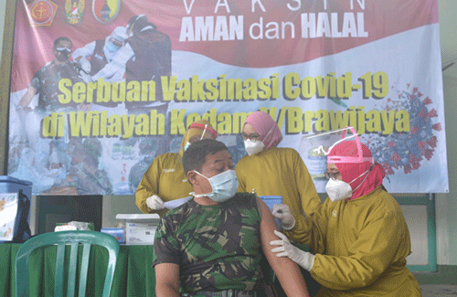Sebagaimana kita ketahui bahwa sekarang ini sedang memasuki tahap kedua dari program vaksinasi nasional. Dimana tahap kedua vaksin diprioritaskan diberikan kepada para pejabat pelayanan publik termasuk didalamnya adalah TNI, Polri, Kementerian dan Lembaga terkait,dan skala prioritas ditujukan kepada personel Babinsa pada tahap kedua ini karena dianggap rawan terpapar Covid-19 yang langsung bersentuhan dengan masyarakat,” ucapnya.