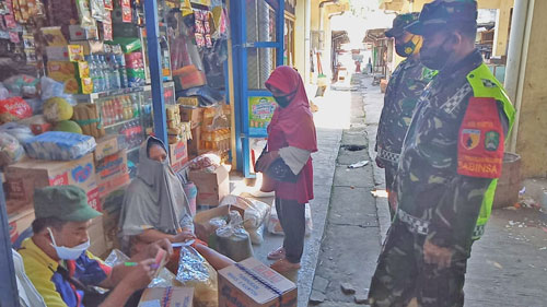 Magetan. Langkah antisipasi penyebaran Covid-19, Koramil Tipe B 0804/06 Maospati bersama jajaran Polsek Maospati dan Satpol-PP gelar Operasi Yustisi pendisiplinkan kepada masyarakat untuk selalu mematuhi protokol kesehatan di wilayah Kecamatan Maospati Kabupaten Magetan, Kamis (22/04/2021).