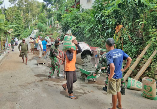 Sementara Bapak puryono sebagai Kepala Desa setempat mengatakan bahwa warga sangat apresiatif dan senang terhadap kegiatan yang dilaksanakan oleh babinsa dimana ikut terjun langsung membaur dengan masyarakat dalam kegiatan pembangunan talud pinggir jalan.