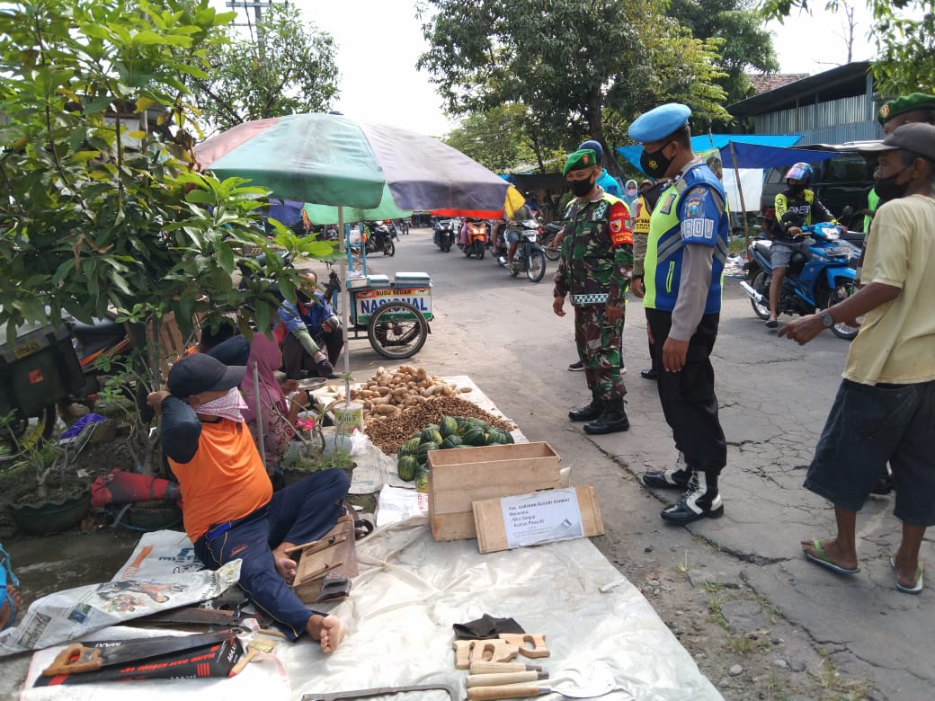 Dalam kegiatan tersebut Personil Koramil tipe 0804/08 Barat bersama Polsek melaksanakan operasi yustisi dengan cara menghimbau, bagi pengunjung pasar untuk selalu menerapkan protokol kesehatan dan menegur penggunjung pasar yang tidak menggunakan masker.