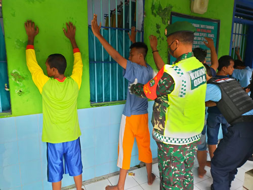 Magetan. Menindaklanjuti Surat Direktorat Jendral Pemasyarakatan Kementrian Hukum dan HAM RI No: PAS-UM.06.01-15 terkait kegiatan razia bersama aparat penegak hukum, Lembaga Rumah Tananan Negara (Rutan) kelas II B Magetan Gandeng TNI-Polri lakukan razia di blok hunian warga binaan pemasyarakatan, sejumlah anggota gabungan tim razia yang terdiri dari anggota Rutan Kelas II B Magetan, Kodim 0804/Magetan dan Polres Magetan, menyisir blok hunian lapas. Selasa sore (06/04/2021)
