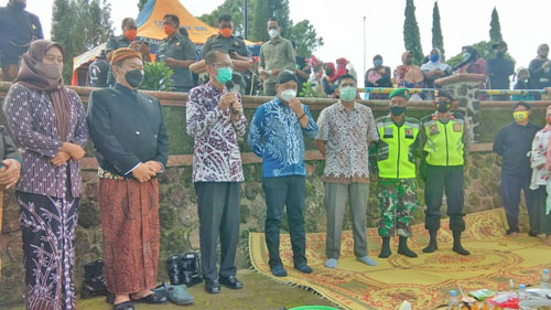 Magetan – Sebagai upaya melestarikan adat dan budaya sebagai warisan leluhur untuk menumbuhkan kearifan lokal dan promosi ekowisata di wilayah binaan, Danramil tipe B 0804/02 Plaosan menghadiri acara syukuran larung sesaji di telaga Sarangan yang di hadiri oleh Bupati Magetan Dr. Drs H. Suprawoto, selain itu di hadiri pula oleh Kadis Pariwisata Bpk Joko Triono, Camat Plaosan Bpk Permadi, Kapolsek Plaosan Akp M. Munir, Lurah Plaosan Bpk. Prima, Serta Warga Kel Sarangan.Sabtu(03/04/2021)