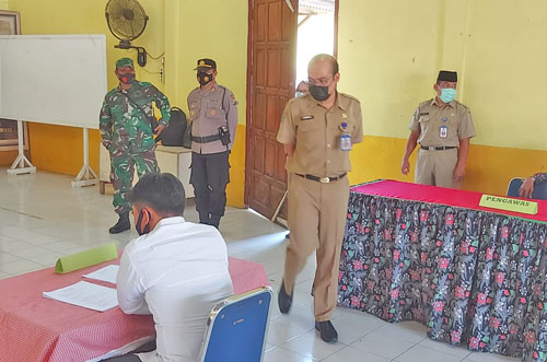Dalam kesempatan,Danramil tipe B 0804/13 Bendo Kapten Inf Arif Wahyu Jatmika menyampaikan, dalam pelaksanaan ujian bagi calon perangkat desa yaitu calon kasi pelayanan ini harus dilaksanakan transparan, jujur dan adil.