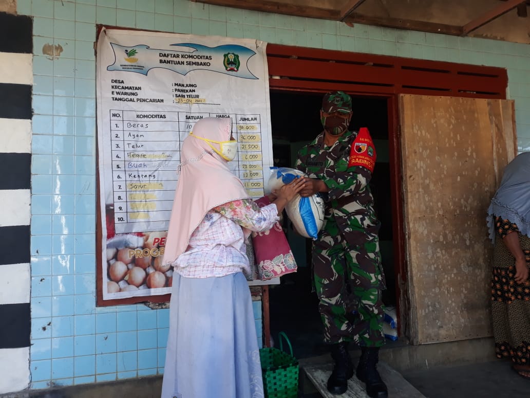 Koramil Tipe B 0804/03 Panekan Kawal Distribusi Jaring Pengamanan Sosial (JPS) Di Wilayahnya