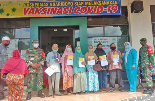 Kehadiran TNI bersama tiga pilar di tengah masyarakat sangatlah diharapkan, seperti halnya yang dilakukan oleh anggota Posramil Ngariboyo bersama Polsek Ngariboyo dan Pemerintah kecamatan Ngariboyo yang membantu seorang lansia setelah melaksanakan vaksinasi,” kata Peltu Hadi.