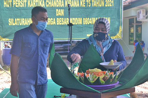 Magetan. Hari Ulang Tahun Persit Kartika Chandra Kirana, Persit Kartika Chandra Kirana Cabang XVIII Dim 0804 Magetan menggelar tasyakuran secara sederhana, hal ini dilaksanakan mengingat saat ini masih dalam situasi pandemi covid 19. Tasyakuran ini merupakan acara puncak peringatan HUT Persit ke 75 yang dilaksanakan di kolam pancing Kodim 0804/Magetan, Minggu (04/04/2021).