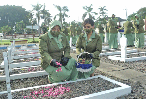 Ziarah rombongan dipimpin oleh Ketua Persit Kartika Chandra Kirana Koorcab Rem 081 Ny. Waris Ari Nugroho didampingi Ketua Persit Kartika Chandra Kirana Cabang XVIII Dim 0804 Magetan Ny. Ismulyono Tri Widodo, yang diikuti oleh ibu-ibu pengurus, karena masih situasi pandemi covid 19 kegiatan ini dilaksanakan dengan menerapkan protokol kesehatan.