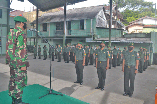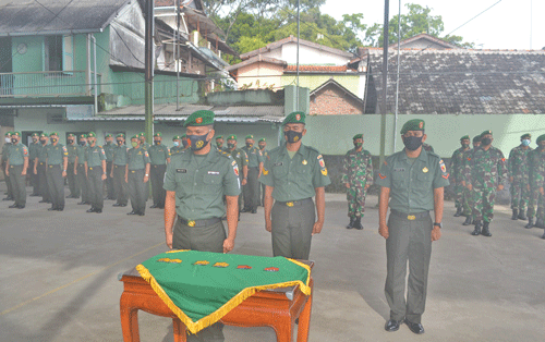Magetan – Komandan Kodim 0804/Magetan yang diwakili oleh Kepala Staf Kodim (Kasdim) Mayor Inf Edy Sunarko, S.Sos, memimpin upacara kenaikan pangkat para Bintara, Tamtama dijajaran Kodim 0804/Magetan, Bertempat di lapangan apel Makodim 0804/Magetan Jln. Panglima Sudirman No. 42 Magetan. Kamis (1/4/2021)