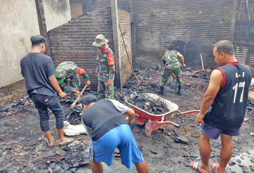 Setelah padam Anggota koramil Panekan, polsek panekan , anggota tagana bersama warga terjun bersama melaksanakan kerja bakti membersihkan puing puing rumah akibat kebakaran rumah tersebut. Pungkas Serma Masyuriah(R 03)