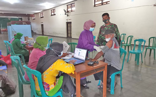 Kehadiran Babinsa juga untuk memastikan kelancaran dan ketertiban pelaksanaan Vaksinasi Lansia. Saya berharap selama pelaksanaan Vaksinasi dari awal hingga selesai tidak ada kendala ataupun hambatan yang terjadi, ”terang Babinsa Serma Mansyur”.