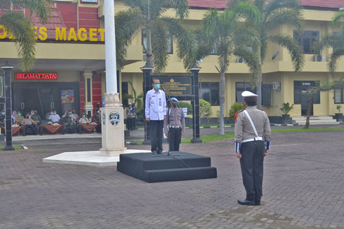 Magetan. Dandim 0804/Magetan Letkol Inf Ismulyono Tri Widodo, S.I.P, bersama Jajaran Forkopimda Kabupaten Magetan menghadiri Apel Gelar Pasukan Operasi Ketupat Semeru 2021 bertempat di Lapangan Apel Mapolres Magetan, Rabu (05/05/2021).