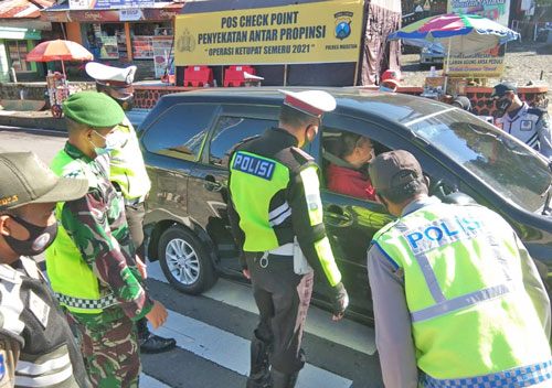 Dalam pelaksanaan Operasi PPKM Mikro dan operasi penyekatan arus balik di Pos Penyekatan Cemorosewu dengan memeriksa kelengkapan SIKM dan Surat Bebas Covid-19
