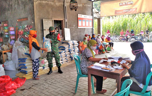 Magetan. Dalam masa pandemi Virus Covid 19, Babinsa desa Kleco Sertu Sri Suharno selalu hadir di tengah-tengah masyarakat dalam rangka memberikan himbauan dan mendisiplinkan masyakarakat supaya mematuhi dan mentaati protokol kesehatan terlebih dalam kegiatan yang bisa menimbulkan kerumunan seperti halnya kegiatan penyaluran BPNT (Bantuan Pangan Non Tunai) berupa paket sembako sebanyak 98 KK yang disalurkan di Kios Toko AINI milik Bpk.Triyanto Rt.04 Rw. 01 Desa Kleco Kec. Bendo Kab. Magetan. Senin (31/05/2021)