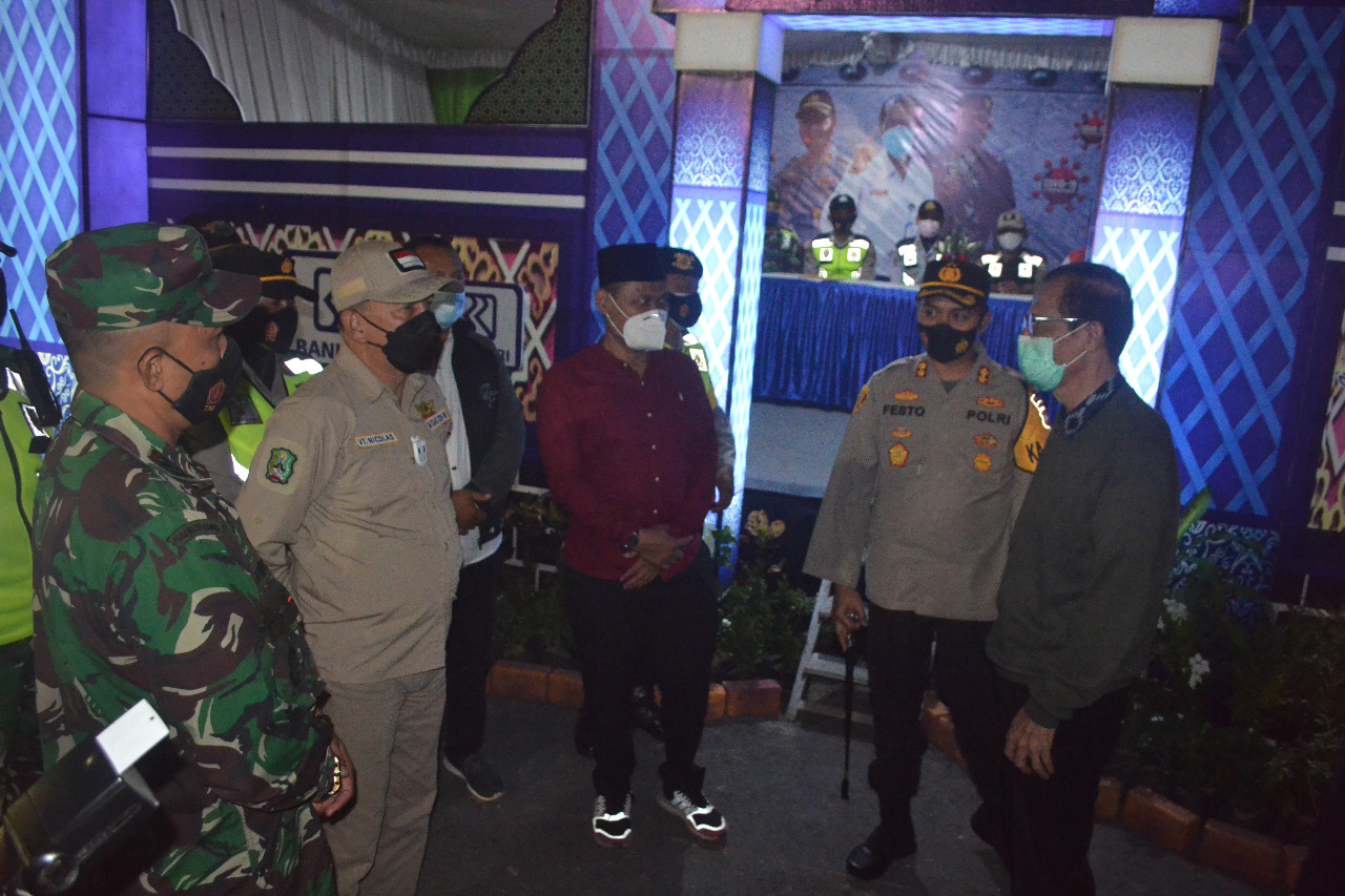 Magetan. Jelang malam hari raya Idul Fitri 1442 H/2021 M, Komandan Kodim 0804, Letkol Inf Ismulyono Tri Widodo, S.I.P, bersama Bupati Magetan Dr. Drs. H. Suprawoto. SH. M.Si, Kapolres Magetan, AKBP Festo Ari Permana. S.I.K, Ketua DPRD Magetan Sujatno, dan OPD terkait, meninjau pelaksanaan kegiatan pengamanan ke beberapa titik lokasi pos check point diantaranya Pos Cemoro Sewu perbatasan Jawa Tengah-Jawa Timur juga ke pos pengamanan Maospati dan pos pengamanan Masjid Agung Baitussalam Magetan, Rabu malam (12/05/2021).