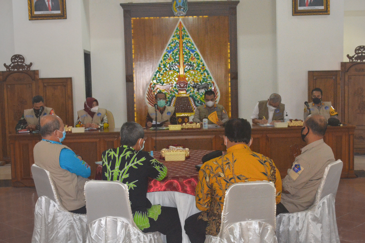 Magetan. Guna mengantisipasi bertambahnya laju kasus Covid-19 khususnya di Kabupaten Magetan jelang perayaan hari raya Idul Fitri 1442 H, Pemkab Magetan gelar Rakor terkait perkembangan kasus Covid-19 di Kabupaten Magetan, bersama Tim Satgas Covid-19 Nasional, jajaran Forkopimda dan OPD terkait, bertempat di Ruang jamuan Pendapa Surya Graha, kegiatan dilanjutkan dengan peninjauan Posko PPKM Mikro di Desa Bogoarum Kec. Plaosan, Jumat (07/05/2021).