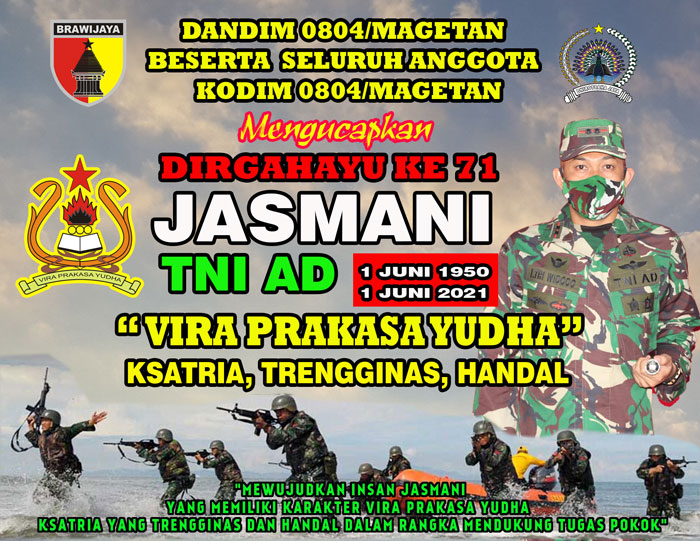 Dandim 0804/Magetan Beserta Anggota Kodim 0804 Magetan Mengucapkan HUT ke 71 Jasmani TNI AD, Ksatria, trengginas, Handal