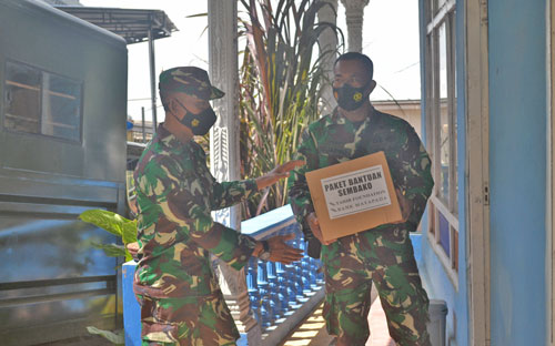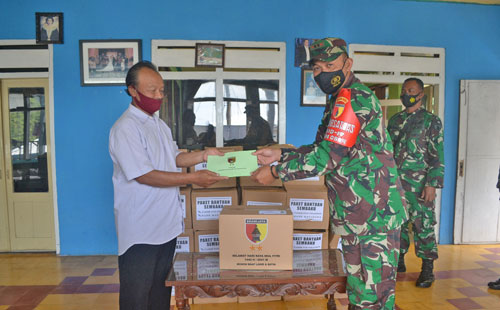 Penyerahan Paket sembako ini dilakukan oleh Komandan Kodim 0804/Magetan Letkol Inf Ismulyono Tri Widodo didampingi Pasi Log Kodim 0804/Magetan Kapten Inf Deny Erwanto yang secara simbolis di serahkan kepada Mbah Suwono dan Sunardi yang merupakan tokoh masyarakat Sarangan, selanjutnya untuk disalurkan kepada warga kurang mampu di Kelurahan Sarangan.