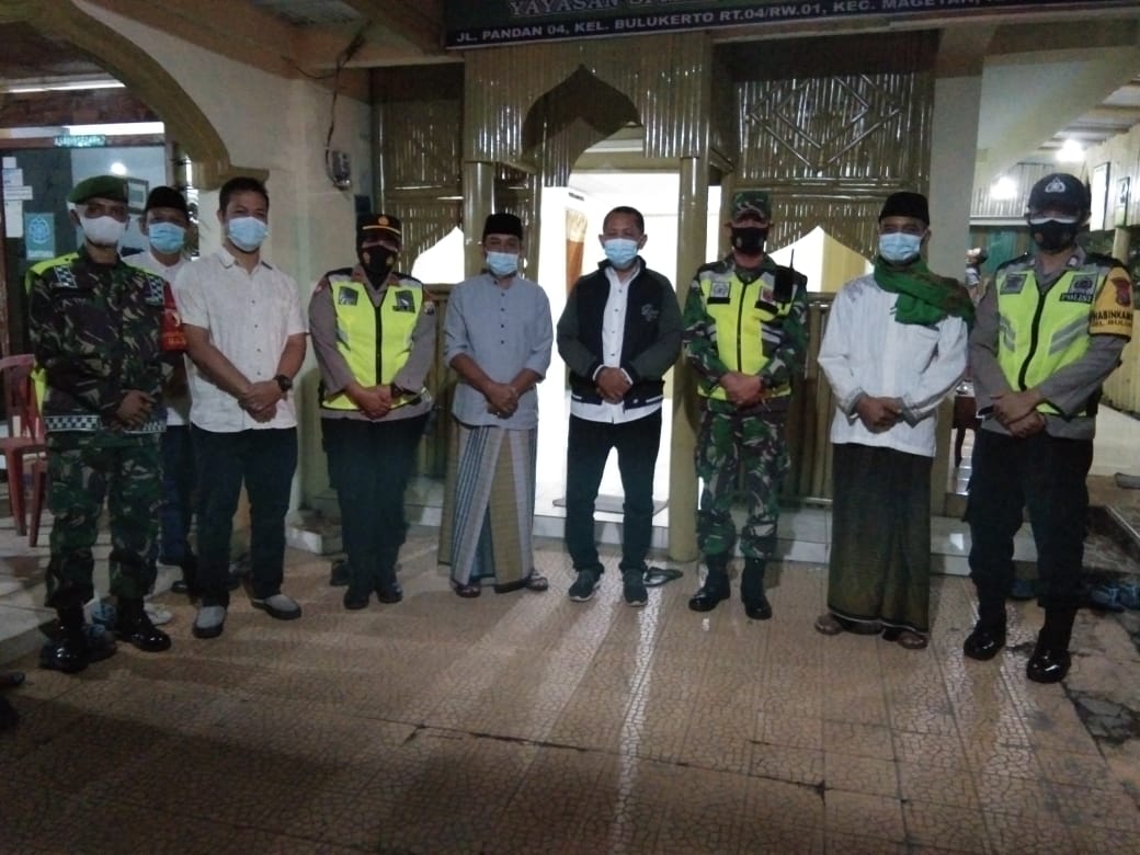 Magetan. Seperti diketahui, pemerintah memberikan kelonggaran dalam aktivitas beribadah, khususnya masjid dizona kuning dan hijau yang digunakan untuk pelaksanaan sholat Idhul Fitri. Tentunya pelonggaran ini mesti dibarengi dengan pengetatan protokol kesehatan pencegahan covid-19.