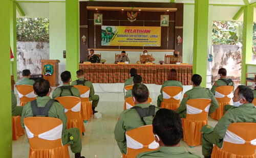 Bati Wanmil 0804/09 Sukomoro Pelda Ribut R menyampaikan ucapan terima kasih kepada seluruh anggota Linmas yang telah hadir dalam kegiatan Pelatihan Linmas,harapannya dalam Pelatihan ini laksanakan dengan sungguh sungguh karena pelatihan baris berbaris adalah modal dasar dalam membentuk kedisiplinan pribadi,maka dari itu laksanakan dengan hati yang legowo dan di dasari dengan semangat yang tinggi. Kami berpesan dalam melaksankan kegiatan jangan lupa menggutamakan protokol kesehatan,jaga jarak dan jangan lupa menggunakan masker.”Tegasnya.