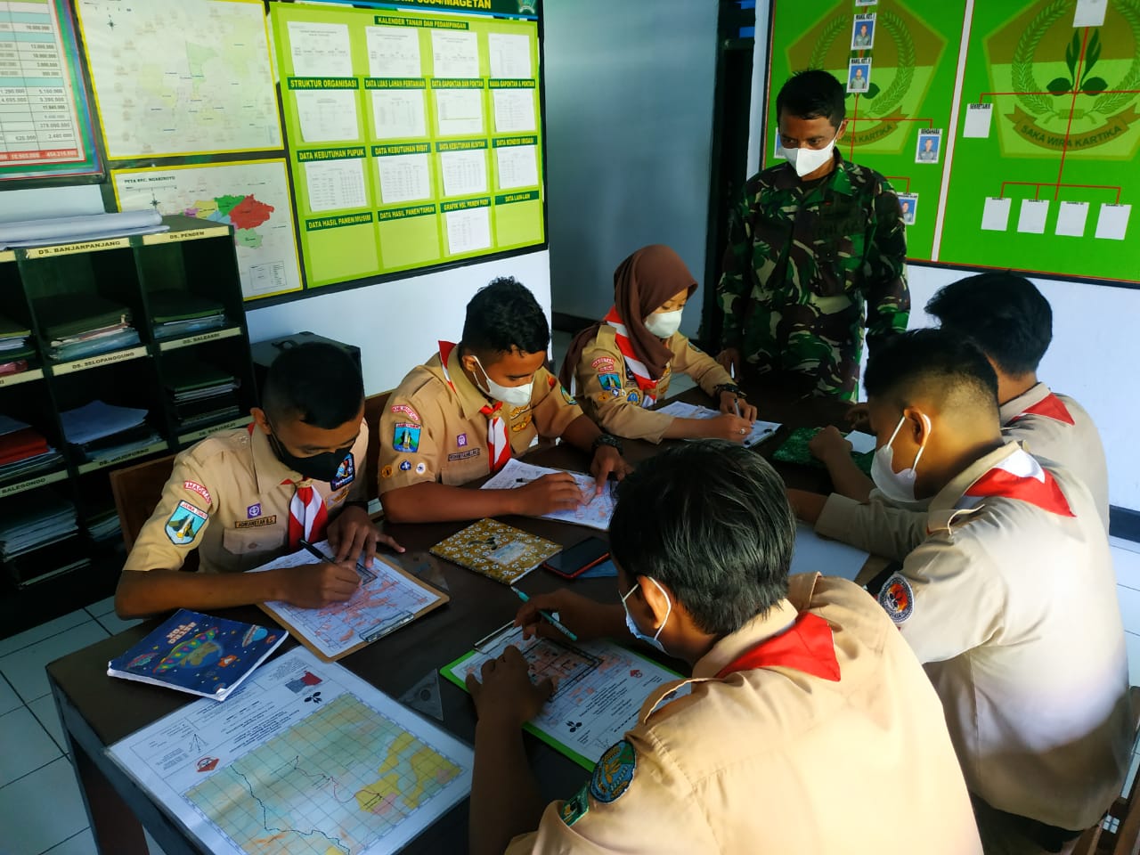Magetan. Koramil Tipe B 0804/01 Magetan Kodim 0804 Magetan memberikan materi Navigasi Darat (Navrat) dan Ilmu Medan, yang disampaikan oleh Bati Wanwil Koramil Tipe B 0804/01 Magetan Serma Dwi Herbiyanto bertempat di ruang Saka Wira Kartika Koramil Tipe B 0804/01 Magetan Jln. Pahlawan Kabupaten Magetan. Minggu (20/06/2021)