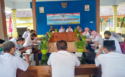 Dalam sambutannya Camat Bendo Ibu Muryani S.Sos menyampaikan kegiatan rakor kali ini merupakan tindak lanjut dari rakor kabupaten membahas akselerasi percepatan pelaksanaan vaksin Covid ,dimana saat ini masyarakat untuk tertib Prokes masih rendah, dan salah satu upaya untuk menekan penyebaran Virus Covid 19 yaitu dengan melaksanakan vaksin dan secepatnya akan dilaksanakan khusus masyarakat umum khususnya para lansia yang ada di wilayah Kecamatan Bendo.
