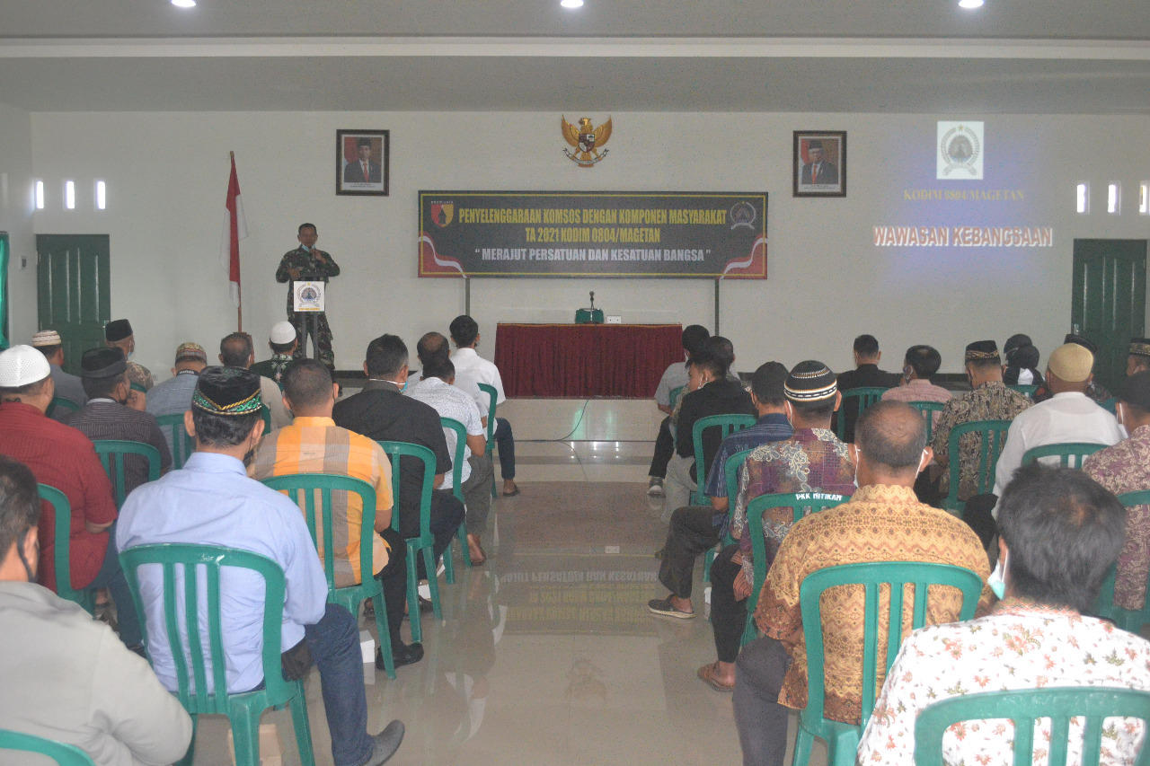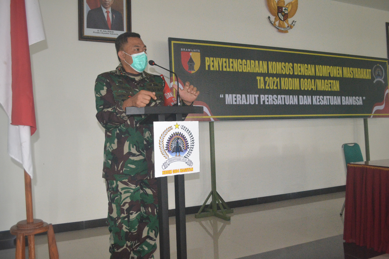 Hal itu disampaikan oleh Komandan Kodim 0804/Magetan, Letnan Kolonel Inf Ismulyono Tri Widodo saat memberikan sambutan pada acara kegiatan Komunikasi Sosial dengan Aparat Pemerintah Tahun 2021 di Aula Kodim 0804/Magetan Jl Panglima Sudirman No 42 Magetan.Selasa (22/06/2021).