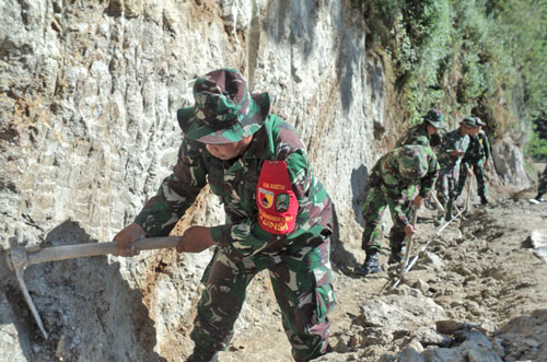 Selain itu, pada kegiatan tersebut prajurit TNI dari Kodim 0804/Magetan bersama warga juga bahu membahu melakukan pengerjaan pelebaran jalan tersebut. Hal itu guna tercapainya target waktu pelaksanaan yang sudah ditentukan. Selain menggunakan alat berat, warga dan TNI juga menggunakan teknik pengerjaan secara manual.