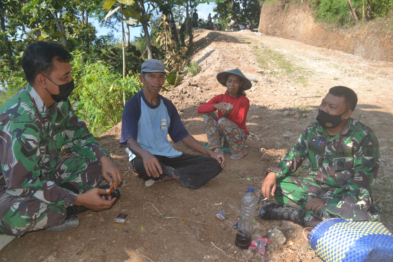 Keakraban dan kebersamaan tersebut terjalin tidak hanya terlihat disaat melakukan pekerjaan Infrastruktur sasaran fisik akan tetapi ditunjukkan satgas Pra TMMD Kodim 0804/Magetan saat berinteraksi dengan warga saat istirahat bersama di Dusun Templek Desa Gonggang.