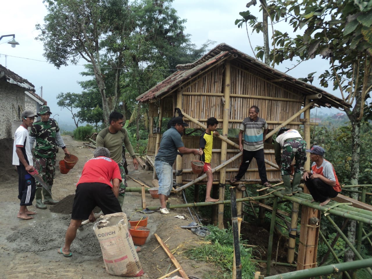 Magetan. Satuan Tugas (Satgas) TMMD ke-111 Kodim 0804/Magetan dan warga bekerja bersama melanjutkan pembangunan 2 poskamling di lokasi TMMD Dusun Templek Desa Gonggang Kecamatan Poncol Kabupaten Magetan yang pembangunannya telah memasuki tahap pengecoran pilar dan pondasi. Selasa (22/6/2021)