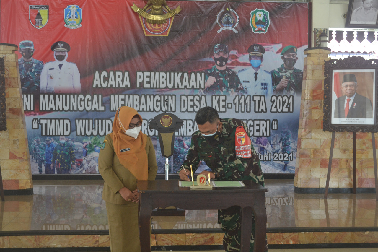 Hal tersebut disampaikan Komandan Kodim 0804/Magetan Letkol Ismulyono Tri Widodo, saat pembukaan Program TNI Manunggal Membangun Desa (TMMD) ke 111 Kodim 0804/Magetan di Pendopo Surya Graha Magetan, Selasa (15/06/2021)