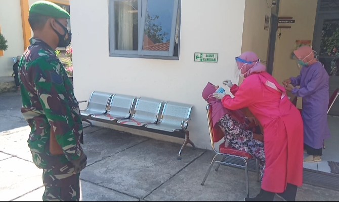 Magetan | Berbagai upaya terus dilakukan untuk memutus penyebaran Covid 19. Seperti yang dilakukan Serma Roni K yang melakukan Pendampingan Test Swab Antigen yang dilakukan di di Puskesmas Kecamatan Bendo Kabupaten Magetan. pendampingan pelaksanaan SWAB PCR ini terhadap kontak erat dan suspek penderita covid-19 di wilayah kerja Puskesmas Bendo. Rabu (21/07/2021)