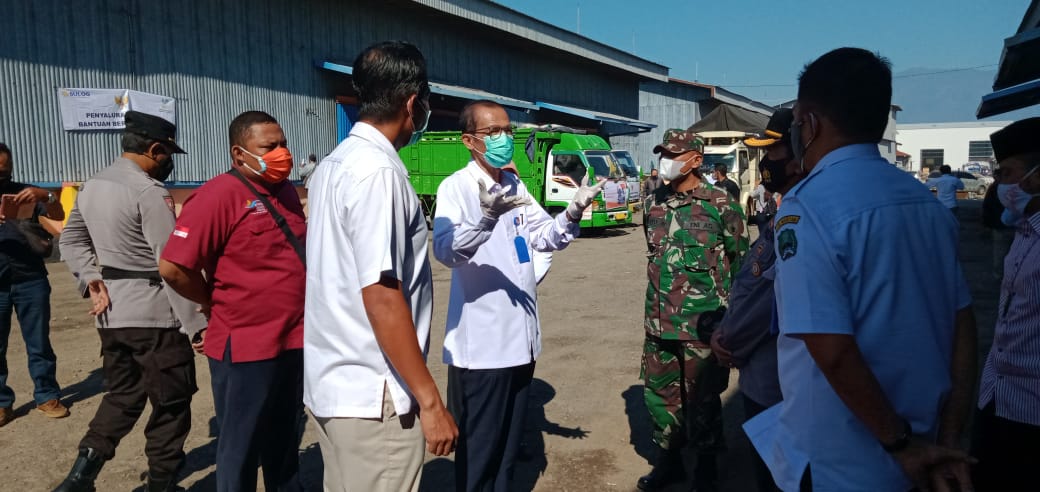 Magetan – Bupati Magetan Dr H.Suprawoto M.Si Launcing Pelaksanaan Penyaluran Bantuan Beras PPKM 2021 dari Kementerian Sosial untuk keluarga penerima manfaat melalui Program Keluarga Harapan (PKH), Bantuan Sosial Tunai (BST) di Bulog GSI Gulun jln Raya Maospati Ngawi Desa Gulun Kecamatan Maospati, Rabu (28/07/2021).