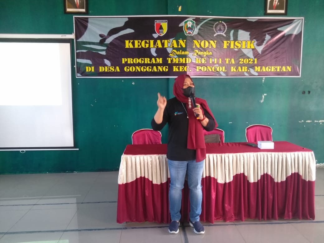Satgas TMMD ke-111 Kodim 0804/Magetan menggandeng Dinas Kesehatan Kabupaten Magetan untuk memberikan penyuluhan tentang Pos Pelayanan Terpadu (Posyandu). bertempat di Balai Desa Gonggang, Senin (05/07/2021).