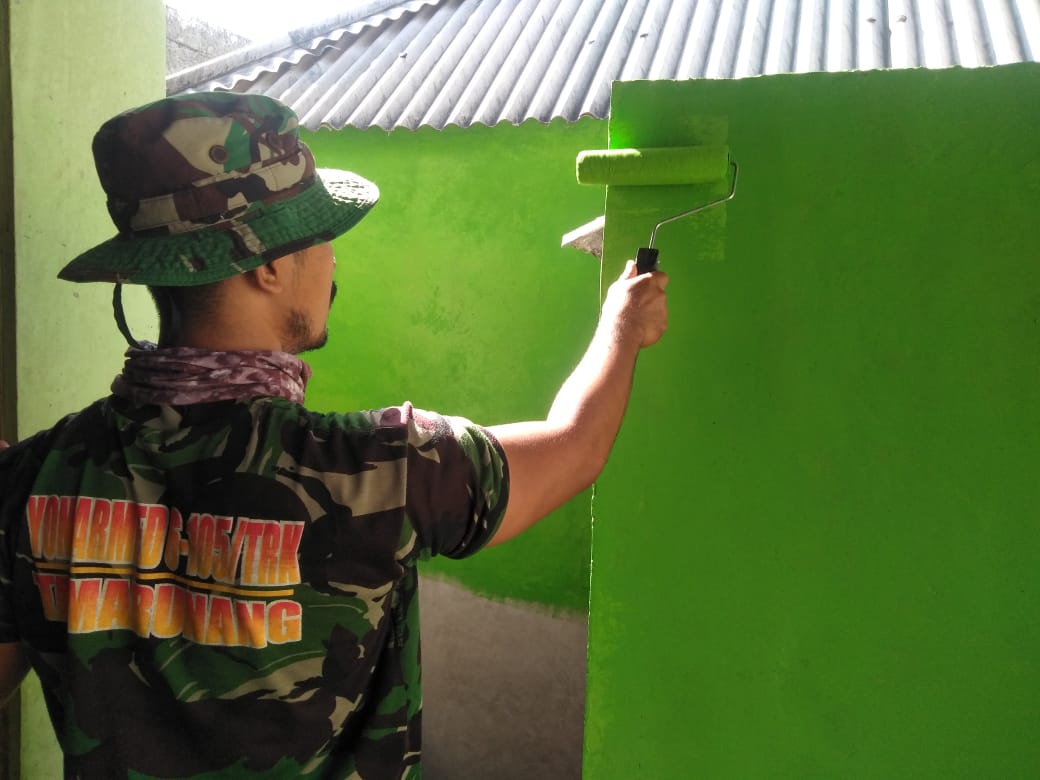 “Hari ini sudah sampai tahap pengecetan, sehingga tinggal beberapa pengerjaan saja” kata Serka Suyadi Babinsa Gonggang.