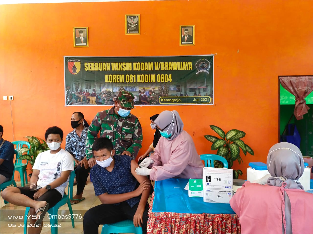Serbuan Vaksinasi covid-19 yang diselenggarakan Koramil 0804/07 Karangrejo pada hari ini di dua desa, yaitu desa Grabahan dan desa Karas dengan kuota penerima vaksin sebanyak 350 orang.