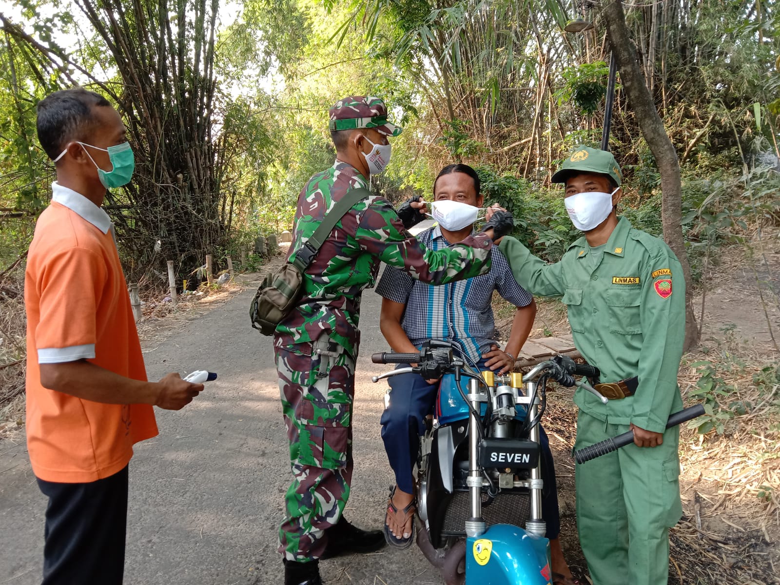 Sertu Suwarsono mendatangi sejumlah Rt diwilayah binaanya, saat bertemu warga yang tidak mengenakan masker Babinsa menghimbau dan memberikanya masker secara gratis.