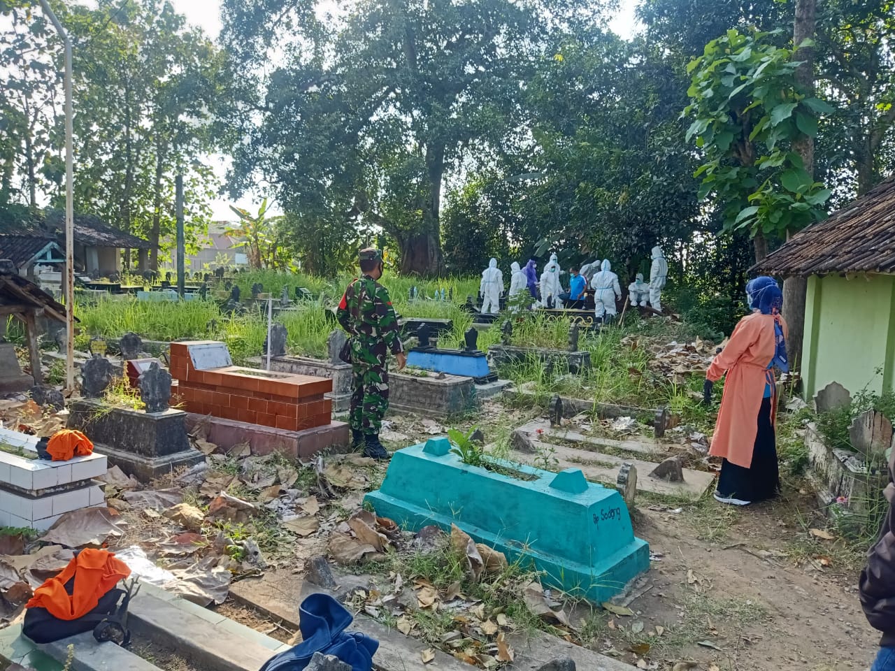 Magetan | Koptu Afandi Babinsa Desa Kalangketi Koramil Tipe B 0804/09 Sukomoro Kodim 0804/Magetan Bersama Babhinkamtibmas Bripka Joko Polsek Sukomoro melaksanakan pemantauan dan pengamanan pemakaman warga di Desa Kalngketi Kec.Sukomoro Kab Magetan Jatim, Jumat (06/08/2021)