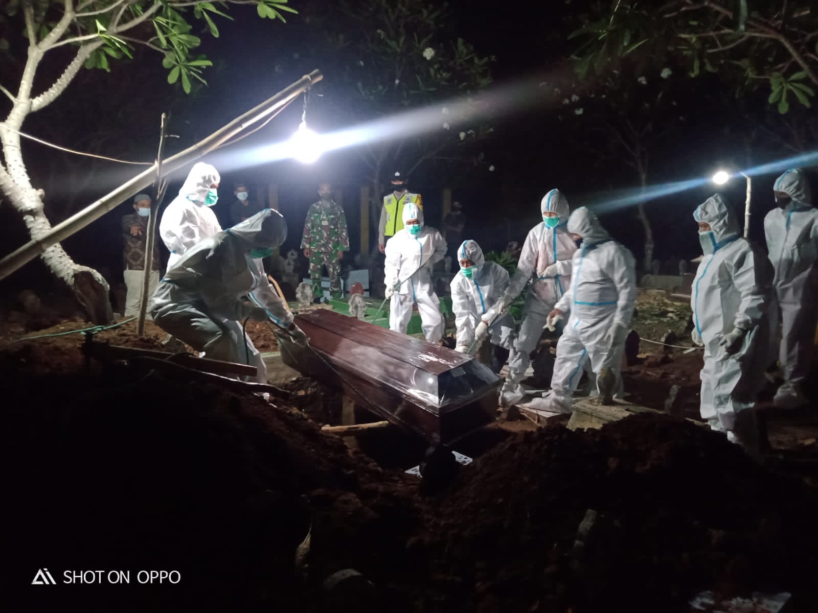 Setelah mendapatkan informasi bahwa adanya warga meninggal dunia terkonfirm Covid 19, Babinsa langsung berkoordinasi terkait pemakaman secara protokol kesehatan dengan tiga pilar dan petugas kesehatan dan menyakinkan tidak ada penolakan dari warga setempat.