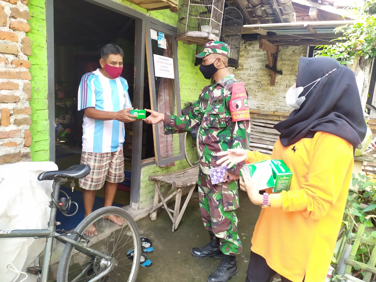Magetan – Babinsa Koramil tipe B 0804/07 Karangrejo Serda Purwanto bersama Bidan Desa didampingi Perangkat Desa menyerahkan obat bagi warga yang sedang menjalani isolasi mandiri (Isoman) di Kel. Manisrejo, Kecamatan Karangrejo, Kabupaten Magetan, Jumat (20/8/2021).