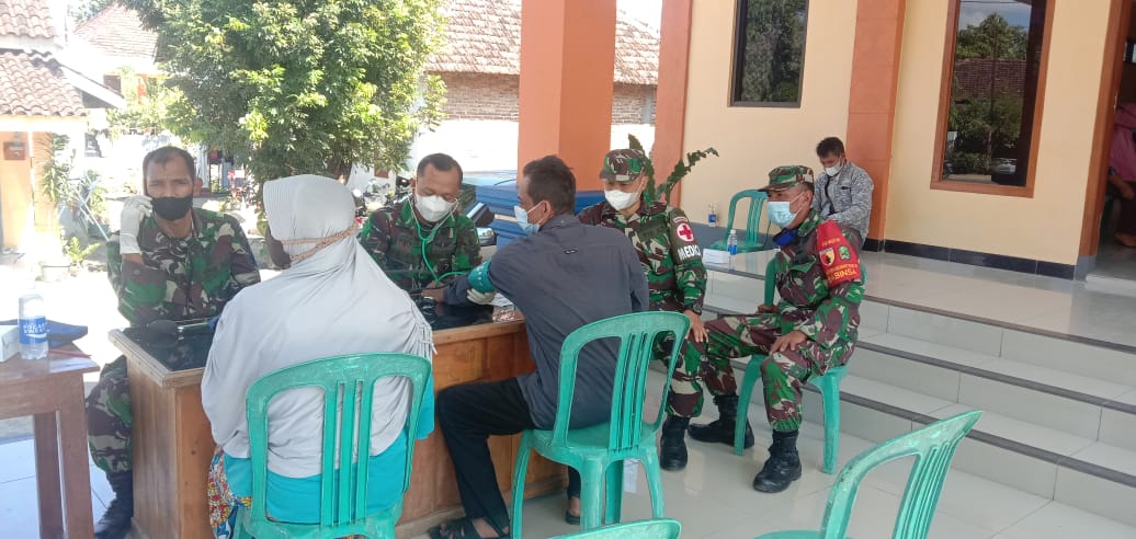 Magetan. Koramil 0804/09 Sukomoro,Babinsa Kedungguwo Sertu Kholiq Bantu menyukseskan serbuan Vaksinasi di wilayah Kecamatan Sukomoro tepatnya Desa Kedungguwo. Kec Sukomoro Kab Magetan. Senin (23/08/2021).