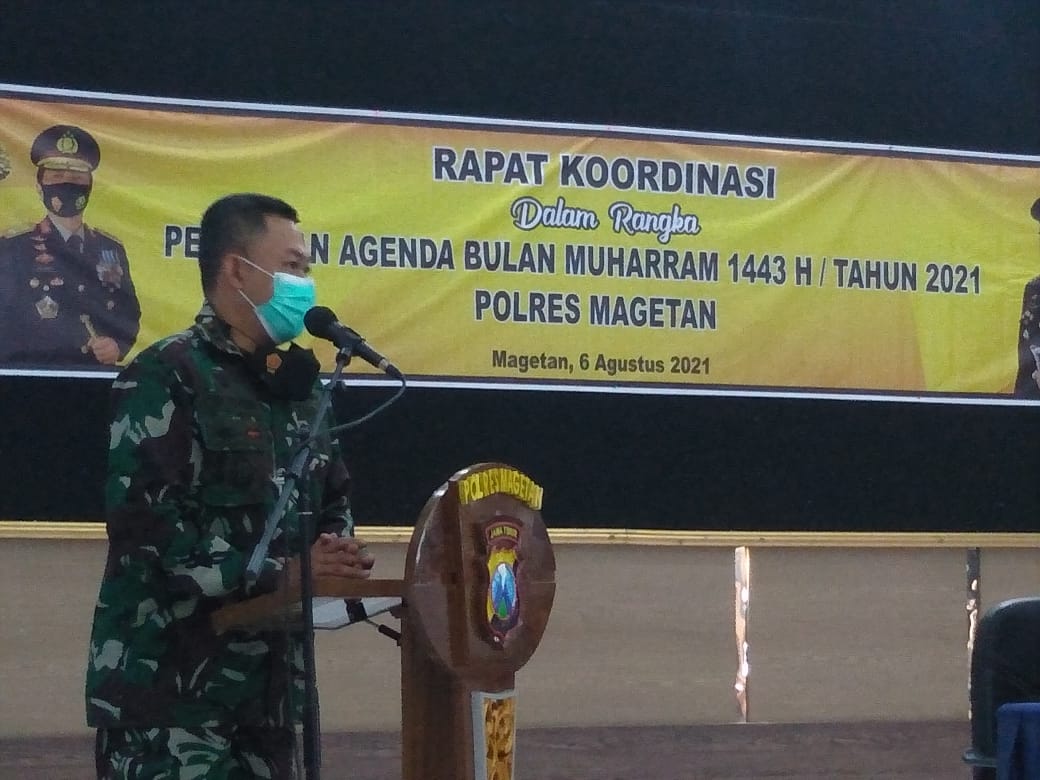 Keterangan dari Kapolres Magetan AKBP Festo Ari Permana dari hasil rapat koordinasi hari ini bersama jajaran di wilayah Magetan telah menyepakati bahwa tidak ada kegiatan dalam rangka menyambut bulan Suro, menurut Kapolres Magetan sekarang ini masih berstatus PPKM Level 4, karenanya semua kegiatan yang bersifat kerumunan dan melibatkan massa dilarang. Jum’at (06/08/2021)