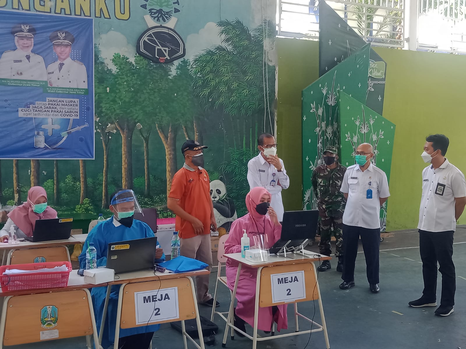 Magetan. Koramil Tipe B 0804/13 Bendo mendampingi Bupati Magetan meninjau pelaksanaan vaksinasi Covid-19 oleh Tim Medis Dinas Kesehatan UPT Puskesmas Bendo, Puskesmas Kawedanan, Puskesmas Maospati bagi pelajar di SMKN 1 Bendo Kecamatan Bendo, Kabupaten Magetan, Rabu (04/08/2021).