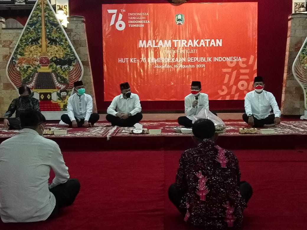 “Malam tirakatan dalam menyambut peringatan Hari Proklamasi sama halnya sebuah perenungan spiritual dan kontemplasi dengan memusatkan batin kita agar dapat menunaikan cita–cita dan semangat proklamasi kemerdekaan dengan konsisten, konsekuen dan berkelanjutan. Tak lupa juga kita berdoa agar Indonesia khususnya Kab. Magetan semakin baik dan segera bebas dari Pandemi Covid-19,” tuturnya.