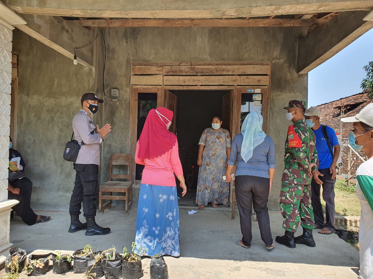 Babinsa Sertu Supriyadi. memberi keterangan, keterlibatan kami di sini untuk mendampingi tim kesehatan dari Puskesmas Taji guna mendata dan mengecek keadaan kesehatan warga yang kontak langsung dengan pasien Covid-19.