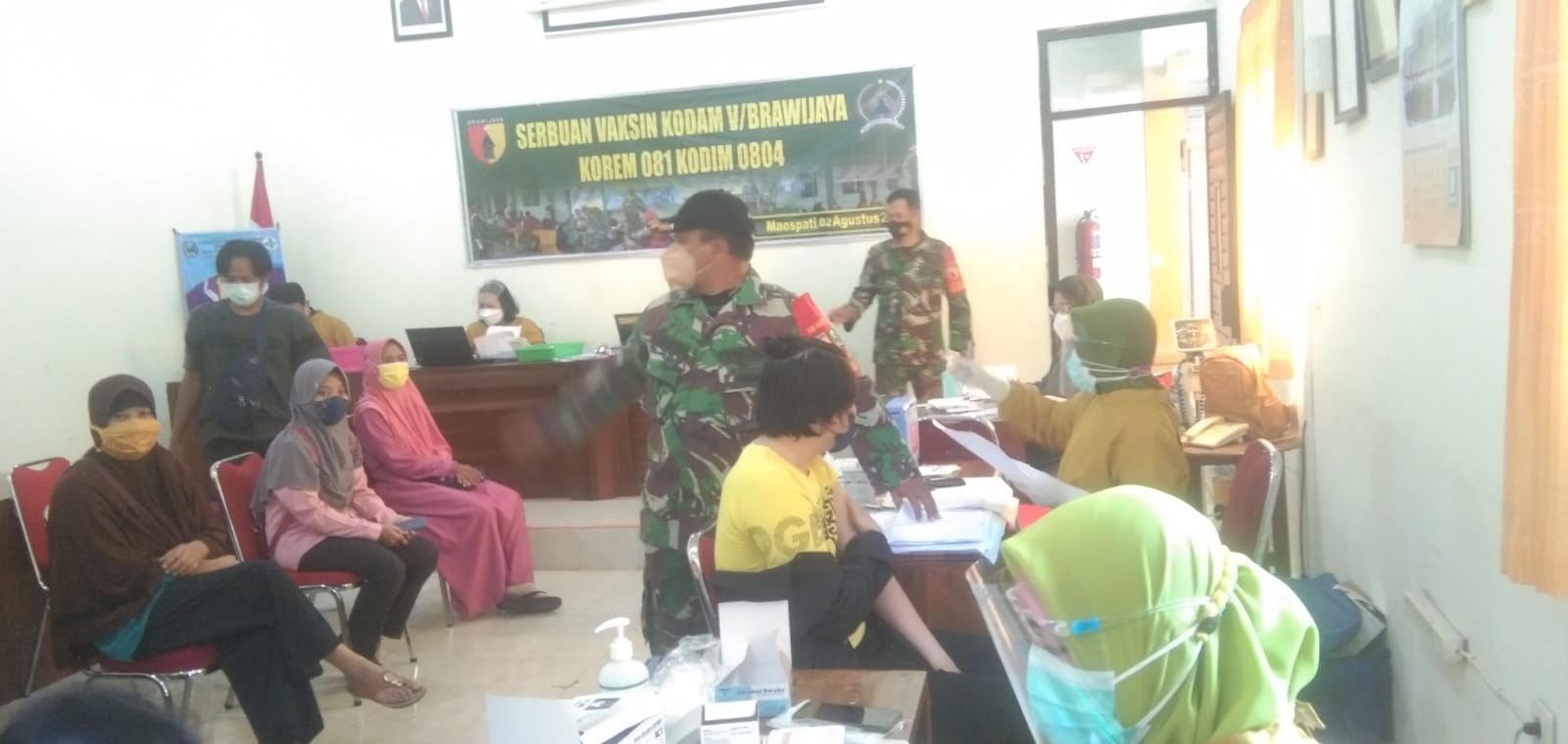 Plh Danramil Tipe B 0804/06 Maospati Kpt Arm Suyatmin mengatakan “Vaksinasi yang dilakukan secara serentak ini sesuai perintah dan imbauan dari Komando Atas (Korem 081/DSJ) supaya jajaran Kodim melaksanakan serbuan vaksinasi gratis secara serentak di wilayah binaan masing-masing,”Ungkap Plh Danramil.