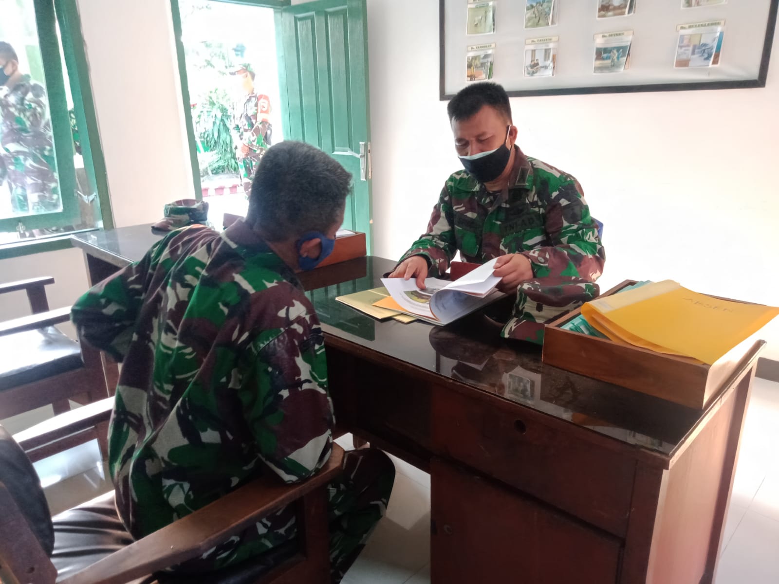 Bendo. Bati Tuud Korami Tipe B 0804/13 Bendo Peltu Suharno beserta seluruh anggotanya menerima kunjungan dari Tim Pengawasan dan Evaluasi ( Wasev ) Korem 081/DSJ yang dipimpin oleh Perwira Seksi Puanter Mayor Inf Siregar didampingi Pasiter Kodim 0804/Magetan Kapten Inf Joko Priyadi bertempat di Makoramil Tipe B 0804/13 Bendo. Senin (16/8/2021)